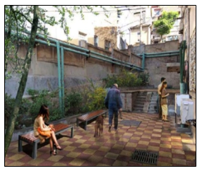 Shape the entrance and exit of Victory Street, plaza and other iconic landscape space, and at the same time reasonably adjust and maintain the key iconic landscape within the neighborhood to form a spatial landscape system. As the iconic main entrance of Victory Street, set up entrance plazas and new auxiliary pagodas at the main entrances on the east and west sides respectively, and at the same time set up additional small-scale public spaces in other streets and alleys such as Xinchang Alley. Inside the block, the existing characteristic features and resources are utilized to create the characteristic public space system of the block by establishing the flower and bird market and other characteristic landscape sketches, reasonably repairing and transforming the traditional cultural plaza (Figure 7), and maintaining the characteristics of the former residences of celebrities and the historical buildings of the old firms. The corresponding planning and design of the open space of the neighborhood will help to improve the production and living environment of the residents, and provide a comfortable and pleasant spatial environment for their recreation and cultural exchanges.