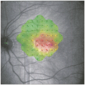 Figure 1 Example visual field defect in wet AMD patient represented as a microperimetry sensitivity map.