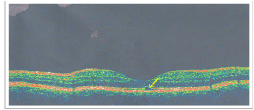 Wyrsch et al.10 reported a 15-year-old boy who sustained a sub macular hemorrhage after using a handheld green laser pointer with an output power of 150 mW. Similar findings were recently published by Alsulaiman et al.11 after the use of handheld lasers with 750 mW output power and 450 nm wavelengths. In 2013 the first case report that demonstrated laser-induced retinal injury documented by both spectral domain optical coherence tomography and fundus autofluorescence was presented by Irene Rusu et al.24 in that report, optical coherence tomography images showed that the ellipsoid zone and external limiting membrane are disrupted at the site of the lesion. In addition, they report reversible outer retinal disruption overlying the RPE similar in appearance to outer retinal tabulation.