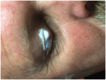 Figure 1 A mixture of eutectic lidocaine 2.5% and prilocaine 2.5% (EMLA) is placed on the chalazion for 10 minutes.