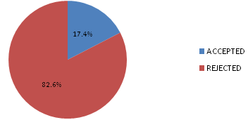 One hundred and thirty-eight primary open angle glaucoma patients were analyzed for this study, they comprised of 71males (51.4%) and 67 females (48.6%) m: f ratio 1:05:1. Their age range was 23 to 82 years with a mean of 58.2 SD+14.6,the greatest proportion (64.5%) were aged 60 years and above while the least proportion were aged 20–29years (4.3%) Table 1. Thirty (21.7%) of them were illiterates while 108 (78.3%) had some level of education. Regarding their occupation, majority of them were artisans & traders (28.9%) while students were the least (4.4%) as depicted in Table 2. Twenty four (17.4%) accepted surgery as against 114 (82.6%) that rejected it (Figure 1), The most common reason for non acceptance of surgery was mainly fear of going blind in 94 patients (82.5%). Other reasons were been able to see well in 12patients (10.5%) and discouraging information from some other patients that had Trabeculectomy by 8patients (7.0%) (Figure 2). Of the patients that accepted surgery, 70.8% of them were blind with a visual acuity of < 3/60 and central visual field of less than 100 from fixation.