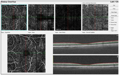 Optical coherence tomography (OCT) is an imaging of any tissue we can analyze with a light source,1 OCT became the gold standard for retinal disease during the last decade and take the most important place in multimodal exploration in retinal diseases. Time domain OCT (TD OCT) first, spectral domain OCT (SD OCT) and swept source OCT (SS OCT) now, are the best friends for the retinal daily practice of any ophthalmologists. OCT (SD and SS),2,3 permit an anatomic analysis of retinal tissue with now high resolution near to the μmeter, three dimensional imaging, the accuracy of these devices permit many clinical use in retinal pathology, glaucoma even in neuro ophthalmology. Angio OCT or angiography dye less is a new method of retinal imaging based on high resolution analysis which permit to visualizate retinal and choroidal vessels.