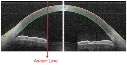 All images were collected using the Tomey Casia (Tomey, Nagoya, Japan) swept source spectral domain anterior segment OCT. Images were collected using the “anterior segment” settings. The Casia OCT produces a three dimensional image based on the principal of “swept source” OCT. The wavelength of the light source is 1310nm. It produces high resolution imaging of 10um (axial) and 30um (transverse) resolution and a scan rate of of 30,000 A-scans per second. Rapid scan frequency and the ability to scan the entire anterior segment within 0.3-2.4 seconds, minimizes motion artefact.