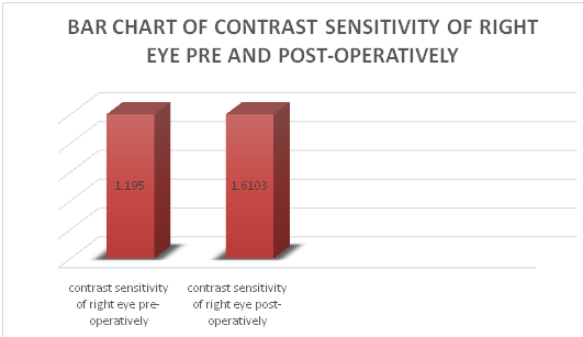 Contrast sensitivity of right eye pre-operatively and post-operatively |