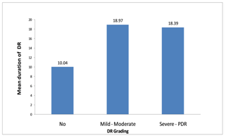 Diabetic retinopathy grading was done by International classification of diabetic retinopathy (ICDR).The data was analyzed to know the prevalence of DR and relation with age, sex and duration of DM. Those patients who had proliferative diabetic retinopathy or clinically significant macular edema were referred to the retina clinic for further evaluation and management.