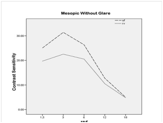 Table 1 Contrast sensitivity scores in spatial frequencies in mesopic conditions without glare with FACT