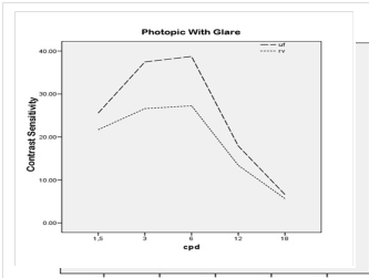 Figure 4 Contrast sensitivity scores in different spatial frequencies in photonic conditions with glare.