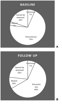 IS/OS junction: The integrity of IS/OS junction graded according to its integrity as continuous, discontinuous, completely absent or cannot be assessed as in (Figure 1).