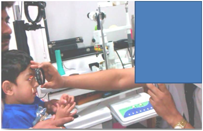 Results: Of 31 consecutive cases, DIDO identified all 5 patients who had retinal pathology diagnosed by BIDO. Seventeen children, aged 9.6±3.1 years underwent the E-DDDO and DR. The accommodative amplitude with E-DDDO was 8±2.3D, (range 4-11D) and that with DR was 8.5±2.7 D, (range 4-14D). One patient with asthenopia & hypo-accommodation was identified on both DR and E-DDDO. The Pearson r for E-DDDO & DR was 0.9. There was no statistical difference between the values obtained on two different techniques (Paired t test–p=0.6).