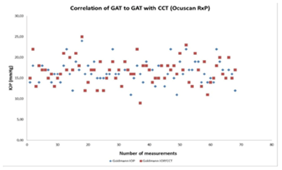 Goldmann applanation tonometry with central corneal thickness (Ocuscan) 16.65±2.99 mmHg;