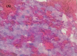 Figure 1A Impression cytology of non smoker Subject with abundant goblet cells and intense positive cytoplasm, small round epithelial cells with nucleo-cytoplasmic ratio of 1:2