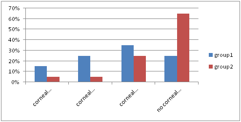 Results: After 12months of follow up, 3eyes (15%) with recurrence were seen in group I which was not significantly different from group II with 2eyes (10%). No corneal neovascularization in group II except in 7eyes of which only 1-2mm neovessels growth in 5eyes and one eye more than 3mm and another eye 2-3mm however in group I no vascularization in only 5eyes with more than 3mm neovessels in 3eyes, 5eyes with neovessels 2-3mm and 7eyes with 1-2mm neovessels. Total P-Value concerning the presence and absence of vascularization between the two groups was 0.000805 which was highly significant.