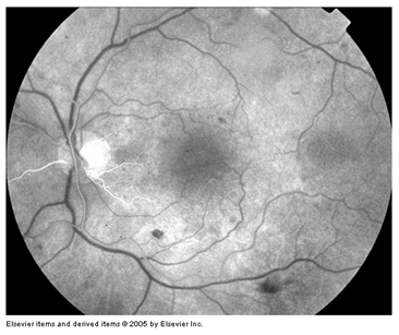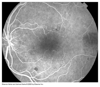 Arterial phase: (Figure 7) Starts 1 to 3 seconds after choroidal fluorescence with filling of the central retinal artery after the central retinal artery begins to fill, the dye flows into the retinal arterioles, pre capillary arterioles, the capillaries, the post capillary venules, and finally the retinal veins.