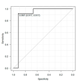 Figure 2 Results from the ROC curve for evaluating the performance in distinguishing patterns of MS as shown by ANN 412661.