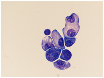 CSF analysis revealed elevation of protein (38mg/ml) and WBC count (710/ml). Flow cytometry was consistent with plasma cell myeloma (Figure 3). Fluorescence in situ hybridization (FISH) analysis demonstrated deletion of chromosome 13q in 78.5% of cells, monosomy of chromosome 17 in 87% of cells and gain of 1q in chromosome 71 of 5% of cells. The patient received 12 sessions of whole brain irradiation and intrathecal chemotherapy with methotrexate/cytarabine/hydrocortisone over the course of two weeks. However, there was no improvement of vision in the right eye. Vision in the left eye fluctuated between 20/32 and 20/100 during his two weeks of admission without any disc edema. Vision in the left eye recovered to baseline after completion of treatment. He also did not develop any new neurologic symptoms.