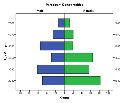 490 eyes of 490 healthy participants; 247 right eyes and 243 left eyes were included. The mean age was 41.7±15.27 years (range 20-81 years); 48.4% male and 51.6% females (Figure 1). Mean densitometry of the entire corneal surface was 15.3±5.79 GSU. The mean corneal densitometry of 0-2mm zone was 13.2±3.81 GSU, 2-6mm zone was 12.6±3.68 GSU, 6-10mm zone was 16.0±8.90 GSU and 10-12mm zone was 22.1±8.26 GSU. The mean difference between 0-2mm and 2-6mm zones was significant with p=0.015. However, values for all other zones were highly significant with p<0.001 (One-way ANOVA) (Figures 2–6).
