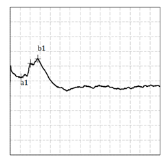 Figure 1 Scotopic ERG in cats. In a scotopic environment with white flash we found a mean amplitude of 600,0 μV for the b wave, most of which was divided into two components (b1 and b2).
