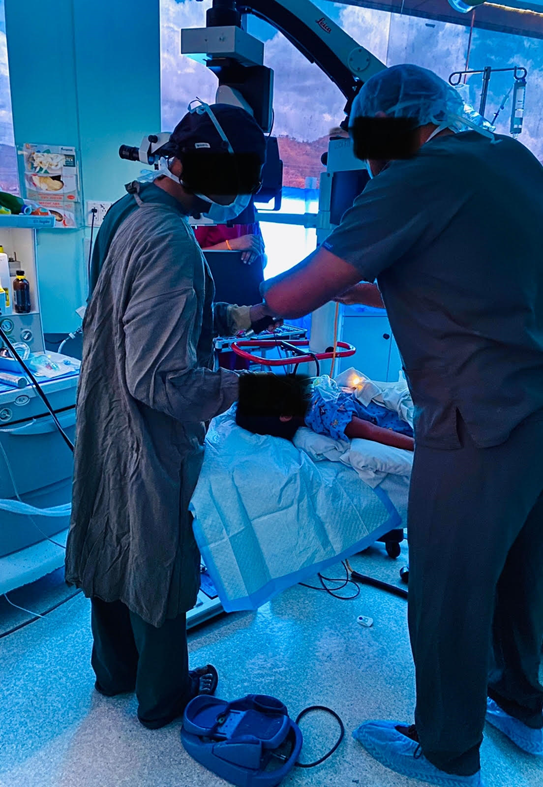 At our hospital, the Trinidad Eye Hospital | Caribbean Vitreous and Retina Surgery Ltd. (TEH | CVRS,) our in-house optometrist adopts a systematic approach as follows, in assessing a paediatric high myope deemed at risk for pathological progression. Routinely and generally to begin with, an automated refractor (AR) is used to estimate the patient’s refractive error. With any flag of childhood myopia, this prompts supplementation of the routine history and exam with further in-depth assessment for myopic features. Careful enquiry about floaters, flashes, peripheral vision curtain defects, approximated daily hours of near work vs outdoor activity, level in school system, history of trauma, family history of retinal detachment, family history of myopia, family history of blindness, and family history of squint is done. The patient’s WD is also noted. After history acquisition, the patient is cyclopleged as described previously. The AR is used as a guiding start point for the objective retinoscopy. In the event of non-definitive, ambiguous refraction, or in the aforementioned clinical circumstances precluding reliable refraction, these patients are re-routed for booking of objective retinoscopy and examination under GA in the surgical theatre. Informed consent is obtained, then our anaesthesiologist provides medical clearance for the patient in question. Of note, our choice of GA is ketamine due to its safety profile in the paediatric population. It also does not contribute to significant alterations in IOPs under sedation.11–13