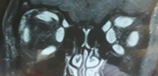 Citation: Camila H, Brenda D, Romina T, et al. Orbital myositis secondary to eosinophilic granulomatosis with polyangiitis, about a case. Adv Ophthalmol Vis Syst. 2023;13(2):54-56. DOI: 10.15406/aovs.2023.13.00440