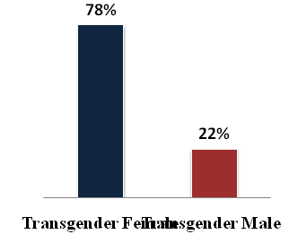 Out of 73 respondents, 57 (78 %) were transgender female and 16 (21.9%) were the transgender male.