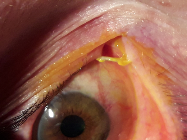 Figure 4 In a female patient, who maintained BIKA for 3 years, mucous matter was found at the entrance of the puncta.