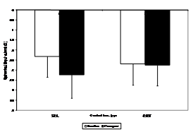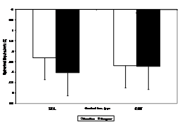 Figure 1 Mean spherical equivalent (D) with standard deviation for the soft contact lens and corneal reshaping group at the baseline and one-year visit.