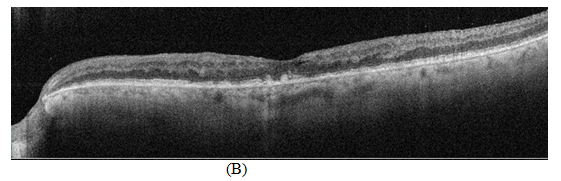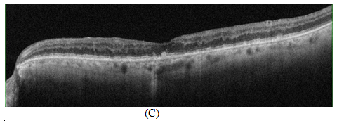 OCT showed remarkable thickness reduction within 48hrs with minimal cystic formation and improved hyperreflectivity in inner retinal layers, however OCT after 4weeks shows improvement in retinal structural changes with normal thickness, while results maintained in the 8weeks (Figure 2).