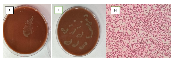 Figure 1F–H Chocolate agar with heavy growth from the patient’s own contact lens and corneal scrapping respectively. The gram stain confirmed a gram negative diplococci bacteria consistent with Neisseria meningitidis.
