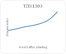 Figure 2c Northern leaf blight disease Progression for TZEI for TZEI 1303 maize line between 2 and 7 weeks after planting.