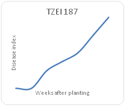 Figure 2g Northern leaf blight disease Progression for TZEI for TZEI 187 maize line between 2 and 7 weeks after planting.
