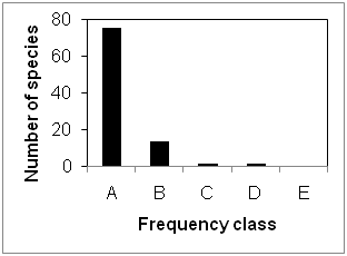 Figure 2 Raunkiaer’s frequency class distribution of over storey vegetation layer of the study area.
