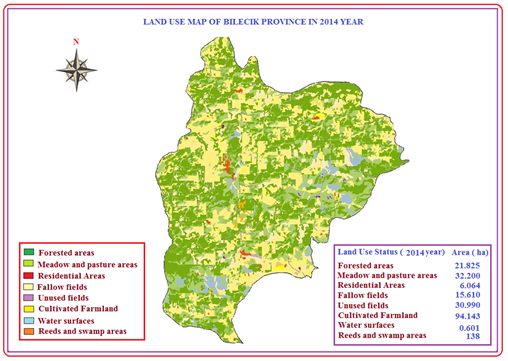The country, which is in the process of accession to the European Community, has to obtain the knowledge of the land cover in the shortest time and in the right direction and form the information bank. It is especially important to determine the amount of land cover from satellite images so that direct income support paid to farmers by the Provincial Directorate of Food, Agriculture and Livestock can be determined accurately and up-to-date. In this study, the land cover/use types and temporal changes of the areas within the Bilecik province borders will be analyzed with satellite images. In this context, it was aimed to determine the changes that took place in the land changes with the help of the remote sensing (UA) analysis techniques provided by the Ministry of Food, Agriculture and Livestock and the newly taken SPOT 5 satellite images in 2010, 2011, 2012, 2013 and 2014. The realization of the plans for the future in the region with the realization of this work and the help to make more accurate decisions is very important in terms of the establishment of a database for the current land use in Bilecik province and the fact that the other engineering works to be carried out in this area are the main source for the data.