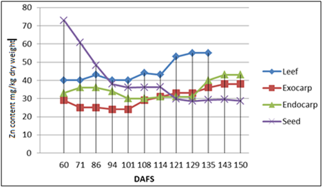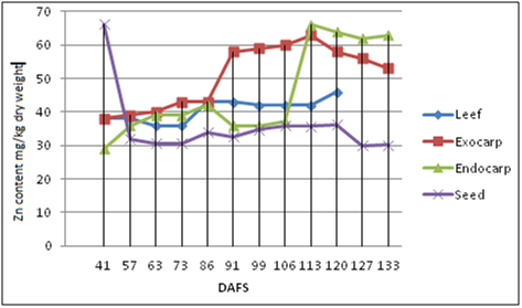 Zn in the Leaves, the Exocarp, the Endocarp and the Seeds |