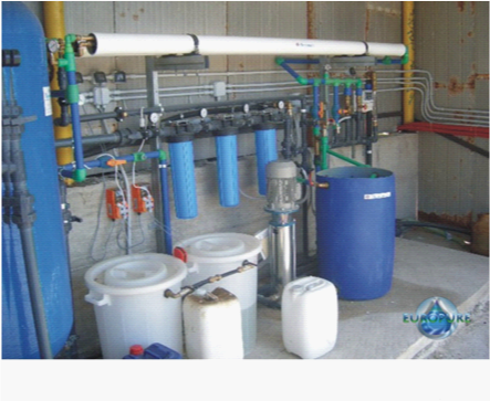 For this reason, an important goal was to arrange a cost effective treatment for Iron removal suitable to farms. Such pre-treatment is based on preliminary oxidation of Iron by air, sedimentation and a catalytic reaction. This is capable to remove more than 98% of Iron from water. The remaining Iron is complexed by proper anti scalant chemical within the RO section.