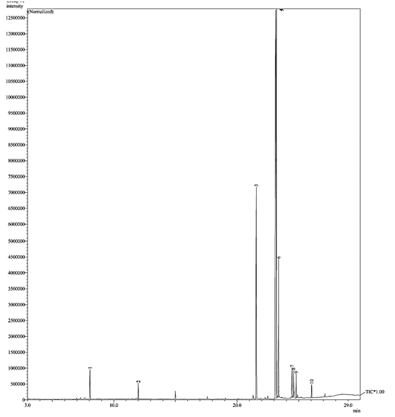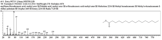 Figure 4 A typical gas chromatogram of the Hexadecanoic acid, methyl ester(Palmitic acid methyl ester).