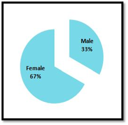 The current work studied population consisted of 119 RA patients whose their ages mean value (50.01±5.56) year. The gender distribution of RA disease among the used samples of Iraqi patients was calculated as percentage (Figure 1).