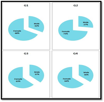 Figure 2 The percentage of gender distribution in each group (G1, G2, G3 and G4) who were classified according to vitamin D level.