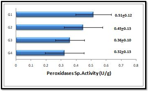 Figure 4 Comparison between the specific activities of peroxidase among the different studied groups.