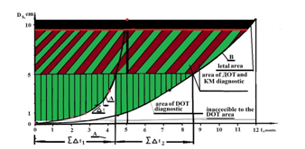 CrT as a tumor means the presence of an area in which the internal volume differs from the surrounding tissues in the normal MG (in structure or thermophysical properties). This is used as a diagnosis with the use of radial CM methods, which are delayed for a long time in comparison with when a tumor is detected at an early, preclinical stage. Breast cancer begins with the division of mutated cell. As the number of these cells increases in the place of their localization there is heating in this place and, accordingly, disturbed metabolism. Pre-clinical stage lasts until the moment when the СM has already fixed CrT. Until then, the patient does not feel the tumor due to the lack of pain symptoms. Assuming that the time of the development cycle of breast cancer from the appearance of the first cancer cell to the lethal outcome ends when the diameter of the CrT is reached in 100 mm, three quarters of this time is preclinical, in which metastases do not yet occur.4 Therefore, if CrT is detected at the preclinical stage, it is much easier to destroy it by selection of therapy provided if the screening is safe, allowing the dynamics to observe degradation of the tumor, and this causes a lower cost of treatment.