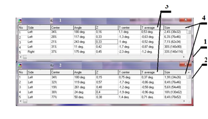 This is clearly seen in the case of two consecutively recorded mammograms in the lower menu, which indicate the average temperature in the RT, indicating which of the mammary glands contains any PT (if any are), what its shape and gradient are in it. All data are surveyed in a table located in the mammogram (Figure 4) (Figure 5) as upper menu, where given all the data obtained during the survey, and, in particular, the dimensions of the region of the projection of the gradient on the surface of the skin. These data are numerically estimated on mammograms.