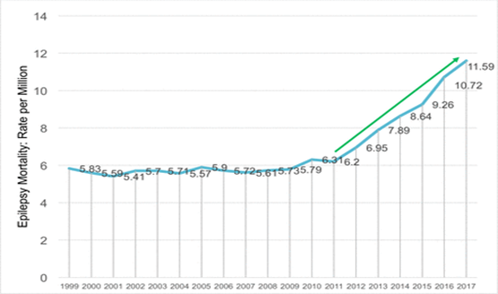 Epilepsy is one of the most common neurological disorders affecting around 50 million people in the world, with 2.4 million new cases each year.18 While Sudden Unexpected Death in Epilepsy (SUDEP) is a rare occurrence, it still impacts approximately 1 in 1,000 individuals with seizures, and its precise cause remains unknown and it claims around 3,000 deaths per year in the United States.19