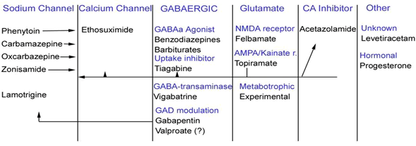 Figure 8 Categorization of antiepileptic drugs based on their primary mechanism of action.38
