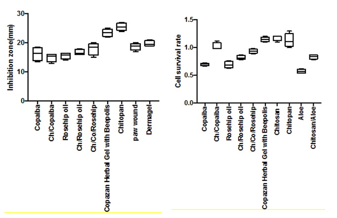 The performance of the Copazan Herbal GelR with Bee polis as a potential wound healing gel was assessed through evaluation of bioadhesion, inhibition zone and assessment of free radical capacity defense properties in vitro as well as demonstrate first clinical example of the improvement of wound healing in the open wound of the domestic animal after surgery.