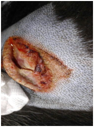 Otitis External (OE), commonly known as an “ear infection”, is a condition characterized by the inflammation of the external auditory canal. Infections of the ear are one of the main reasons that a dog is taken to the veterinarian for treatment. Dogs diagnosed with OE often exhibit inflammation and erythema in the epithelial tissue of the external auditory canal. There is also an increase in wax secretion by the ear glands, itching, and changes in behavior. Environmental factors such as hot weather and humidity can influence the incidence of OE in dogs.9–11