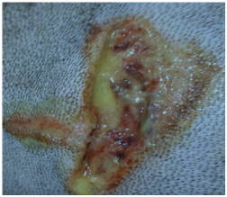 The Copazan Herbal Gel with Bee polis showed a high adhesive force and work of adhesion in vitro. This can be expected due to the well-known intrinsic bio-adhesive properties of chitosan. The adequate water absorption capacity together with the cationic nature9 which promotes binding to the negative surface of the mucosa structure can also explain these results. Appropriate swelling is important to guarantee adhesiveness; however, over hydration can form slippery non-adhesive hydrogels.17,18 Further work is currently on the way in our laboratory to obtain further in vitro and in vivo data for the performance of Copazan Herbal Gel with Bee polis at the various pH conditions and concentrations in order to imitate the wound site conditions in vivo (Figure 1).