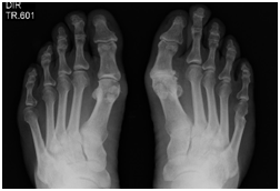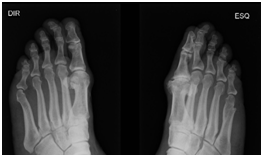 Results: According to Borg scale for pain in the five sessions no pain was related. It was use elastic therapeutic bandage to sustain the foot under the metatarsus in both members. In the seventh day he wears closed shoes without bother. X-ray shows reduction of the bone protuberance on the Hallux.