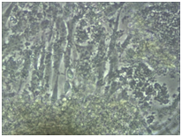 In our work 3D PRF matrix was obtained from human venous blood samples8 by centrifugation at 3000 rpm for 10 min using the coagulation activator SiO2 (Vacumed, F.L. Medica Italy) in 10 ml vacutainer. After centrifugation, it settles in three layers, the upper straw-colored acellular plasma, middle portion containing the fibrin clot, and red-colored lower portion containing red blood cells. The upper straw-colored layer is removed and middle portion is collected, 2 mm below to the lower dividing line, which is the PRF. To study the effect of fibrin matrix density on the vital functions of nerve cells and the culture results, 3D PRF of different density (high and low) were used. Their platelet count was 200 and 100 thousand per ml respectively. The suspension of the brain nerve cells of newborn rat was administered into the middle of the clot by injection and was applied to its outer surface under different experimental samples. Culture was carried out in medium DMEM (Dulbecco's modified Eagle's medium) (PAA, Austria), enriched with 10 % serum of FBS (fetal bovine serum) (PAA, Austria) for 10 days at 37˚C and 5% CO2.