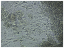 Monitoring of nerve cell culture showed the active formation of growth zone, axonal invasion, the establishment of contacts between cells, the formation of confluence in cell layer when cells were applied on the outer surface of 3D PRF matrix (Figure 1A-1C). When cells were administered inside 3D PRF matrix the active cell migration on the outer surface of the matrix, the formation of contacts by cells in the middle of the matrix, and the network of processes forming neurite-glial fibers with their invasion outside were noted. The dense layer is form by the cells (Figure 1D-1F). Partial lysis of fibrin matrix was revealed at the end culturing (Figure 1B).