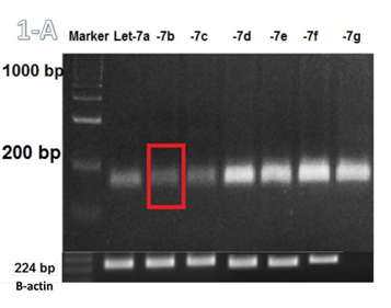 Figure 1A The PCR imaging of Let-7 family expression: As shown the let7-b expression is less than other family.