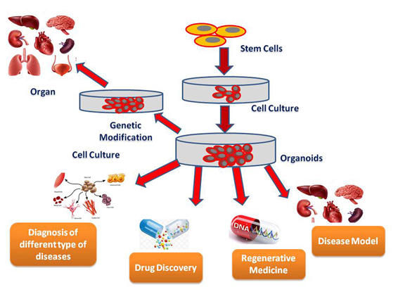 Research in organoids is now an emerging and rapidly growing topic finding its utility and potential in the field of tissue engineering. It has become as one of the hottest topic in the field of science to clinical appliance, connecting drug selection, toxicology, and a variety of models development like tumor models for cancer identification and in an assortment of models in human organ expansion for the treatment of diseases. In fact, organoids technologies are now providing the benefit from molecular analyses, which is helping in elucidation of the molecular mechanism. The various organoids technologies can be exploited in the studies of various disease and organs